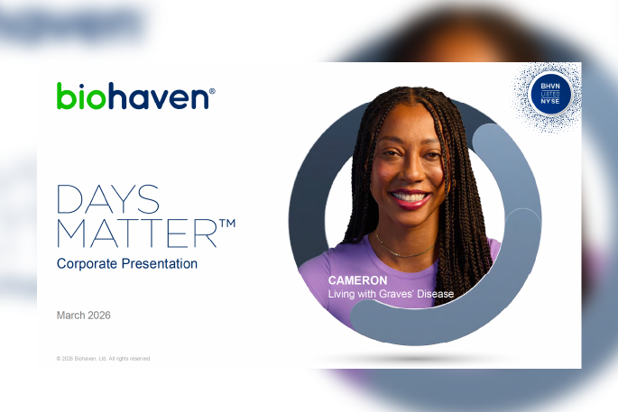 Gaurav Munj 2022-03-04T06:42:16+00:00 CREATING SHAREHOLDER VALUE Site - Investor Relations Nav Overview Press Releases Events and Presentations Financial Filings Stock Information Corporate Governance Contact Upcoming and Recent Events Corporate Presentation SEC Filings Stock Quote & Chart Historical Lookup Governance Documents Committees Biohaven is a biopharmaceutical company focused on the discovery, development and commercialization of life-changing treatments in key therapeutic areas including neuroscience, immunology and oncology. Latest Press Releases March 19, 2026 Biohaven's Phase 2 Obesity Study with Taldefgrobep Alfa, a Novel Myostatin-Activin Pathway Inhibitor, Completes Enrollment March 2, 2026 Biohaven Reports Recent Business Developments and Fourth Quarter and Full Year 2025 Financial Results View All Press Releases View All Events January 12, 2026 at 8:15 AM PST 44th Annual J.P. Morgan Healthcare Conference May 28, 2025 Biohaven R&D Day at Yale School of Management September 23, 2024 at 8:30 AM EDT Biohaven Topline Pivotal Trial Results for Troriluzole in Spinocerebellar Ataxia Listen to webcast View All Events View All BIOHAVEN EVENTSCORPORATE PRESENTATION LETTER FROM THE CHAIRMAN & CEOUntitled Document VIDEOSplay videoINTERVIEW WITH CEO VLAD CORIC M.D. ON CNBC’S FAST MONEYx play videoInterview with CEO Vlad Coric M.D. on CNBC’s Mad Moneyxplay videoDiseases related to glutamate dysregulationx
